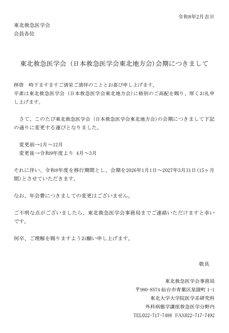 東北救急医学会 (日本救急医学会東北地方会)会期につきまして